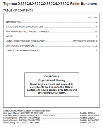 TIGERCAT X830C FELLER BUNCHER OPERATOR/USER MANUAL (83061001-83063000, 83062001-83063000) - PDF FILE DOWNLOAD