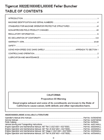 Download Complete Operator/User Manual For Tigercat X830E Feller Buncher | Serial No. (83064001-83065000)