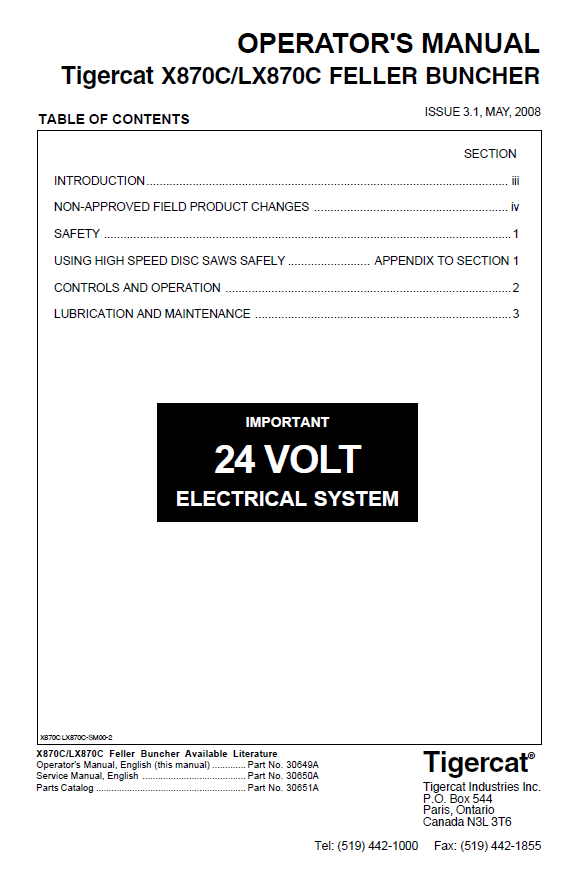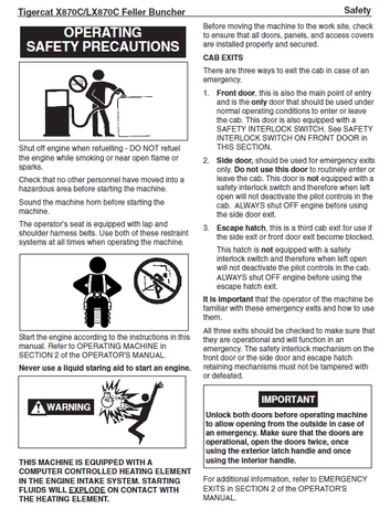 TIGERCAT X870C FELLER BUNCHER OPERATOR/USER MANUAL (87061701-87063500, 87061701-87062100) - PDF FILE DOWNLOAD