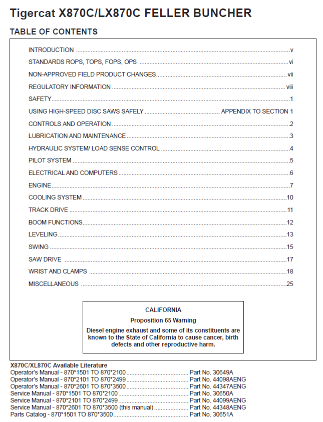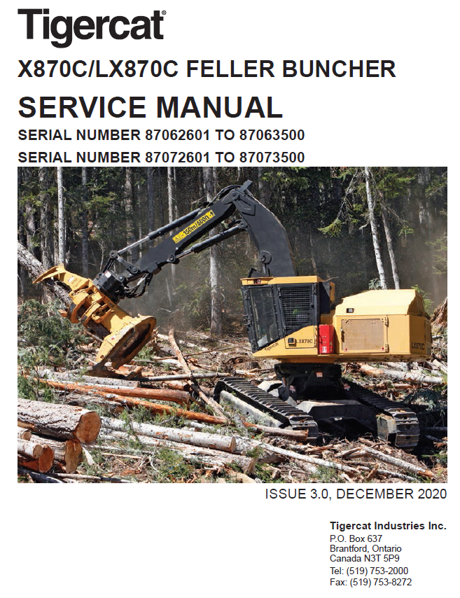 Download Complete Service Repair Manual For Tigercat X870C Feller Buncher | Serial No. (87061701-87063500, 87062601-87063500)