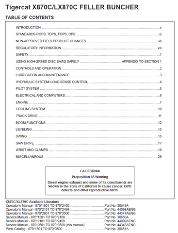 TIGERCAT X870C FELLER BUNCHER SERVICE REPAIR MANUAL (87061701-87063500, 87062601-87063500) - PDF FILE DOWNLOAD