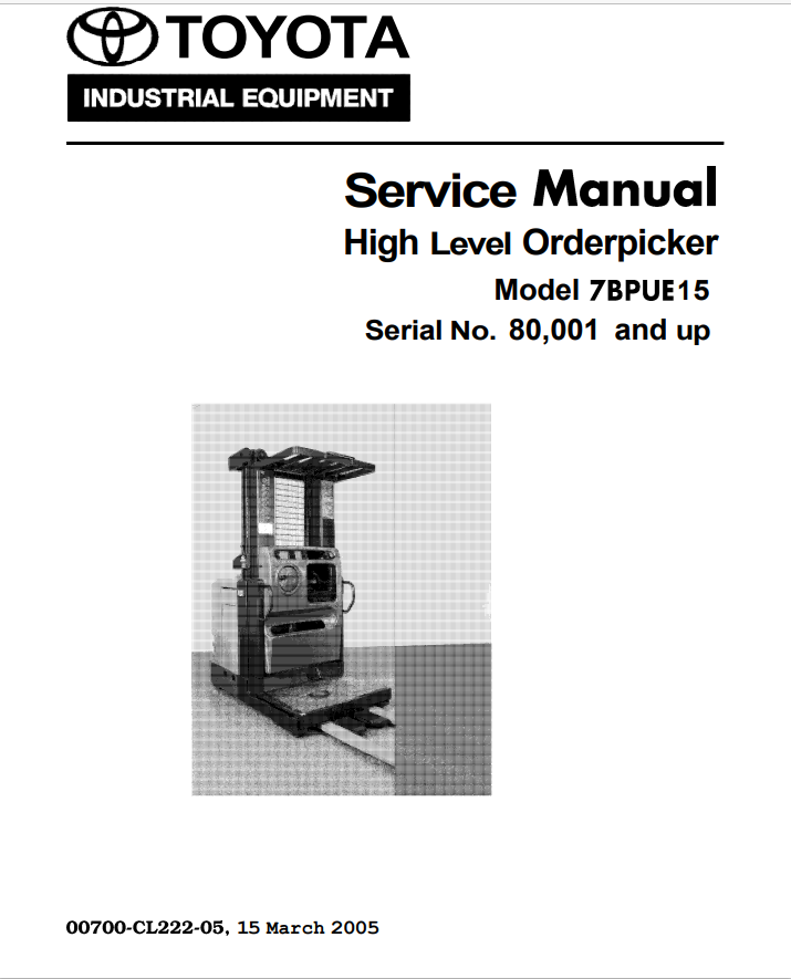 Download Complete Service Repair Manual For Toyota 7BPUE15 Forklift | Part Number- (00700-CL222-05) 80001 and UP