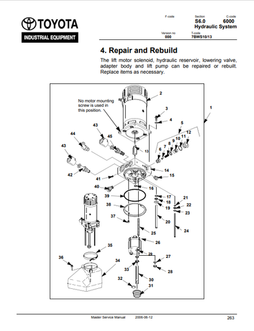 Get the most comprehensive guide for repairing your Toyota 7BWS10-13 forklift with our PDF file download. Expertly written by industry professionals, this manual includes all the necessary information and step-by-step instructions to ensure your forklift is in top working condition. Increase productivity and efficiency with this must-have resource.