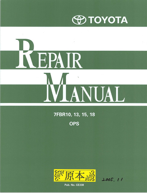 This Toyota 7FBR10-18 Electric Powered Forklift Service Repair Manual, part number CE338, is a comprehensive guide for maintaining and repairing your forklift. With this manual, you'll have access to expert knowledge and step-by-step instructions for ensuring your forklift continues to operate at its best. Download now