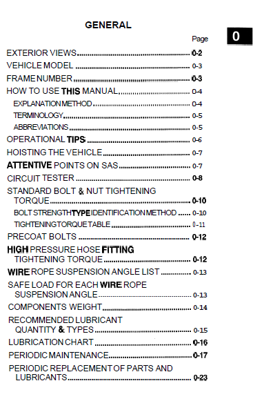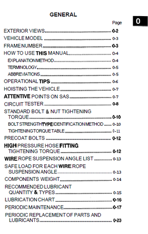 Service Repair Manual Contents: