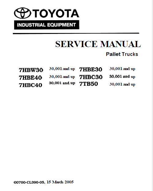 Download Complete Service Repair Manual For Toyota 7HBW-E-C30, 7HBE-C40, 7TB50 Pallet Trucks | Serial Number- 30001 up