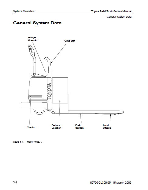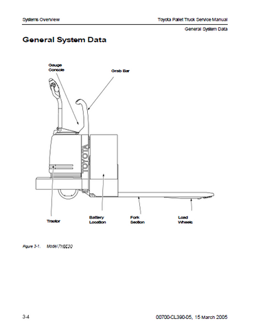 Toyota 7HBW-E-C30, 7HBE-C40, 7TB50 Pallet Trucks Service Manual