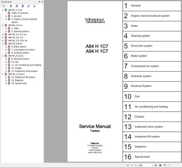 UNLOCK THE FULL POTENTIAL OF YOUR VALTRA A84H1C7 AND A94H1C7 TRACTORS WITH OUR COMPREHENSIVE SERVICE MANUAL, AVAILABLE IN A CONVENIENT PDF FORMAT. THIS ESSENTIAL GUIDE PROVIDES DETAILED INSTRUCTIONS AND INSIGHTS TO HELP YOU MAINTAIN AND REPAIR YOUR MACHINERY EFFICIENTLY, ENSURING OPTIMAL PERFORMANCE AND LONGEVITY.