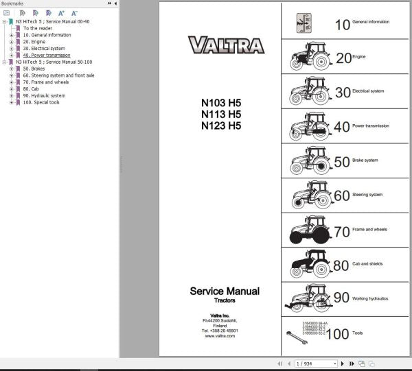 DOWNLOAD COMPLETE SERVICE MANUAL FOR VALTRA TRACTOR N103H5, N113H5, N123H5 - PDF FILE