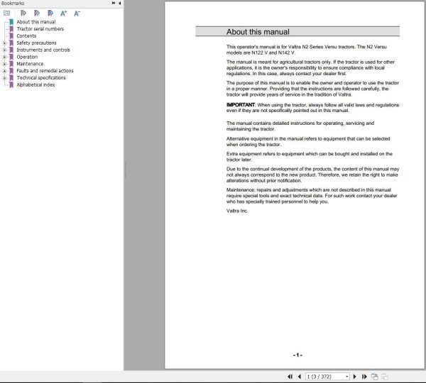 DISCOVER THE ESSENTIAL GUIDE FOR YOUR VALTRA TRACTOR WITH THE N122V AND N142V OPERATOR’S MANUAL IN PDF FORMAT. THIS COMPREHENSIVE MANUAL IS DESIGNED TO PROVIDE YOU WITH ALL THE NECESSARY INFORMATION TO OPERATE AND MAINTAIN YOUR TRACTOR EFFICIENTLY, ENSURING OPTIMAL PERFORMANCE IN THE FIELD.