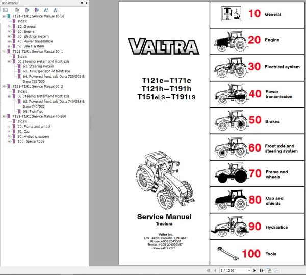 DOWNLOAD COMPLETE SERVICE MANUAL FOR VALTRA TRACTOR T121C TO T191LS 39235211 - PDF FILE
