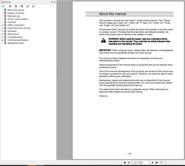 DISCOVER THE ESSENTIAL VALTRA TRACTOR T144H1A7 TO T254H1A7 OPERATOR’S MANUAL, NOW AVAILABLE IN A CONVENIENT PDF FORMAT. THIS COMPREHENSIVE GUIDE IS DESIGNED TO ENHANCE YOUR UNDERSTANDING AND OPERATION OF YOUR VALTRA TRACTOR, ENSURING YOU GET THE MOST OUT OF YOUR INVESTMENT.