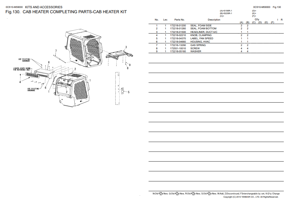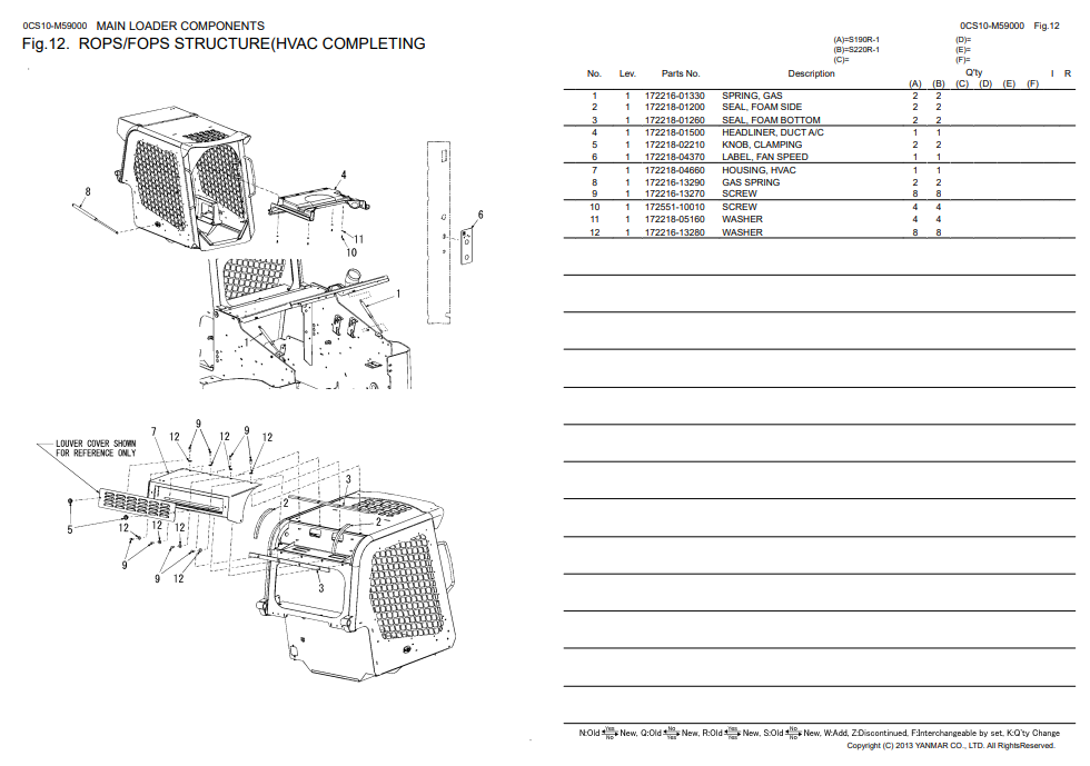 Download Complete Parts Catalogue Manual for Yanmar S220R-1 Skid Steer