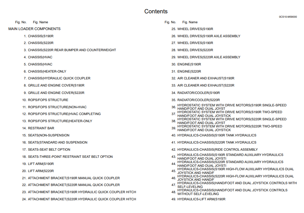 YANMAR S220R-1 SKID STEER LOADER PARTS CATALOG MANUAL 0CS10-M59000_EN - PDF FILE