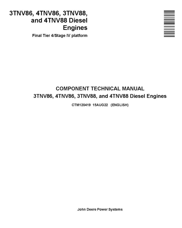 DOWNLOAD COMPLETE TECHNICAL MANUAL FOR YANMAR 3TNV86, 3TNV88, 4TNV86 AND 4TNV88 (FT4/STAGE IV) DIESEL ENGINE | PUBLICATION NUMBER (CTM120419)