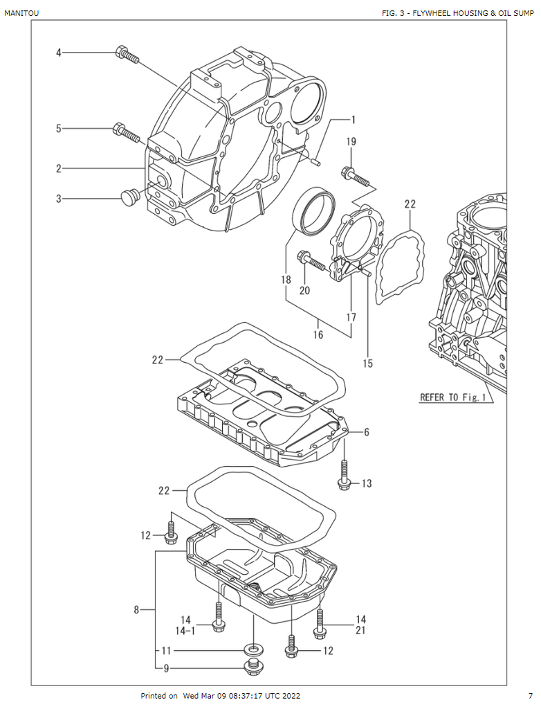 FIG. 3 - FLYWHEEL HOUSING & OIL SUMP