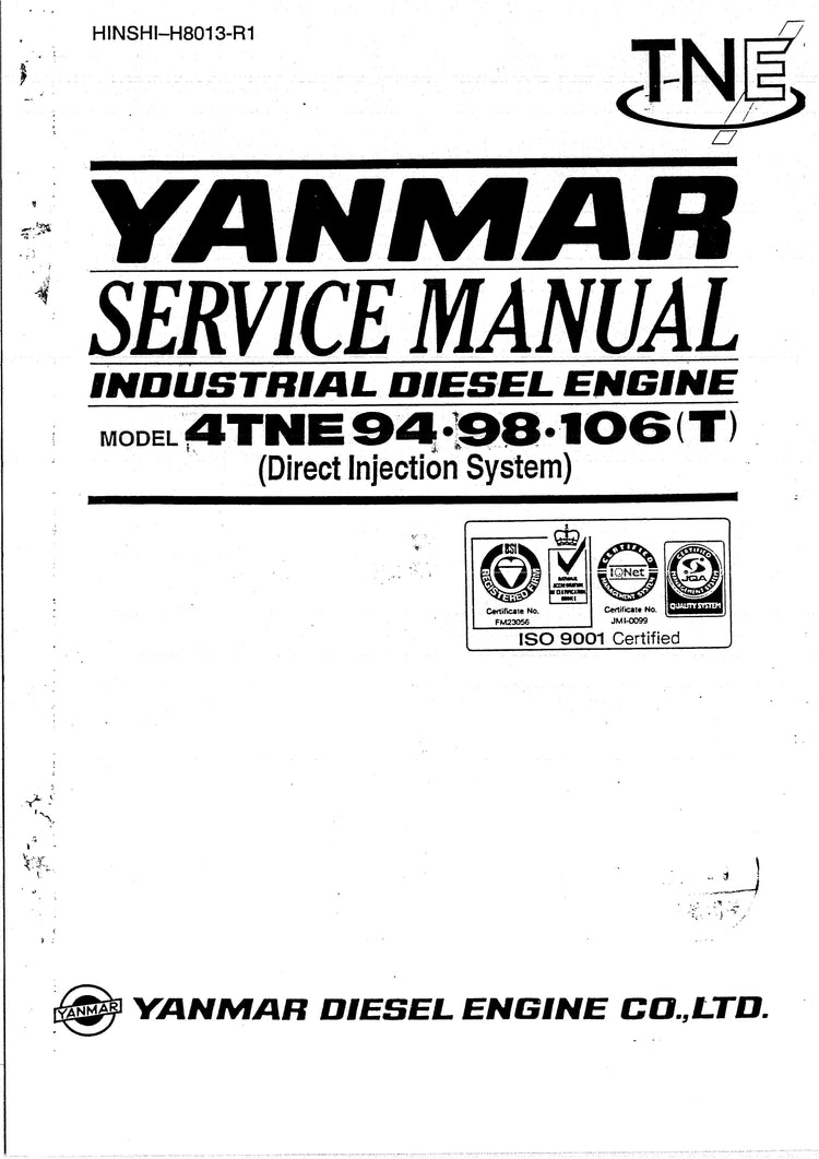 Yanmar 4TNE94, 4TNE98, 4TNE106, 4TNE106T Industrial Diesel Engines