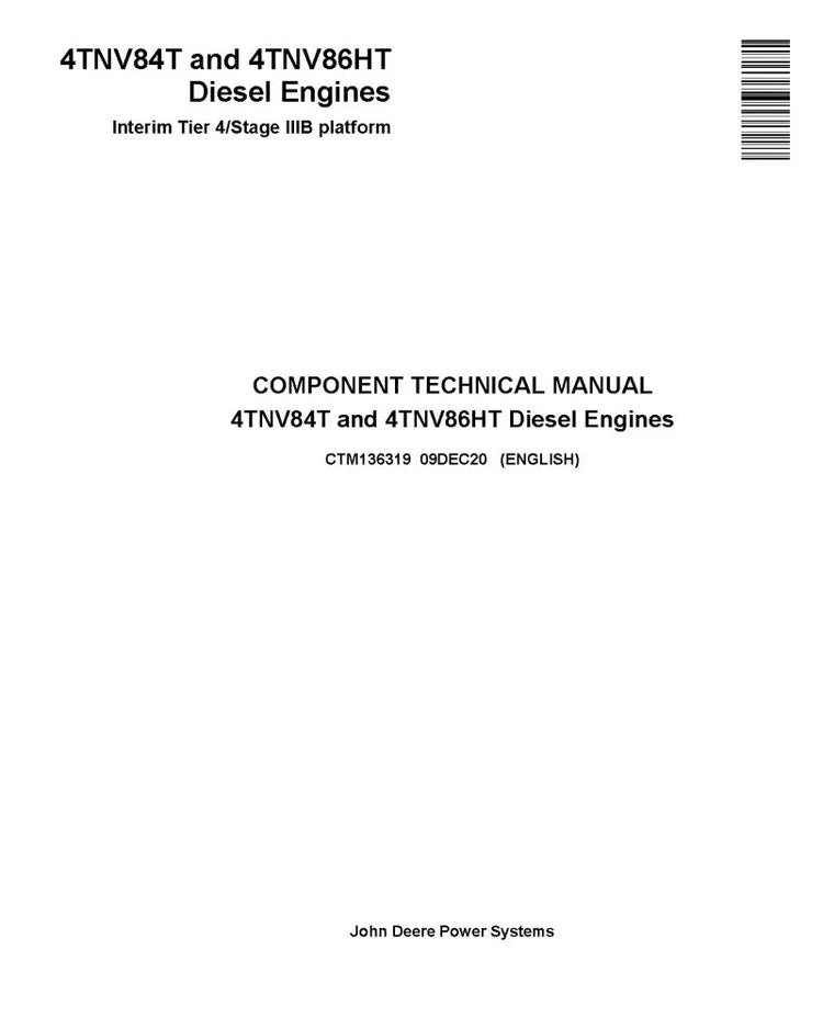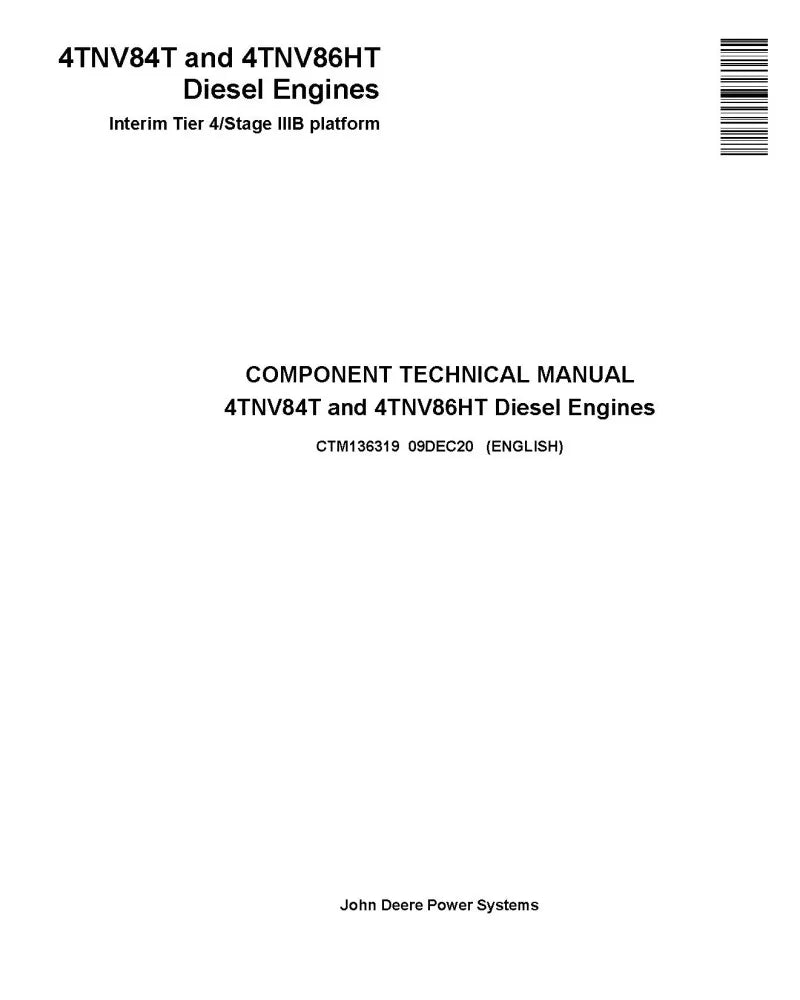 DOWNLOAD COMPLETE TECHNICAL MANUAL FOR YANMAR 4TNV84T AND 4TNV86HT (IT4/STAGE IIIB) DIESEL ENGINE | PUBLICATION NUMBER (CTM136319)