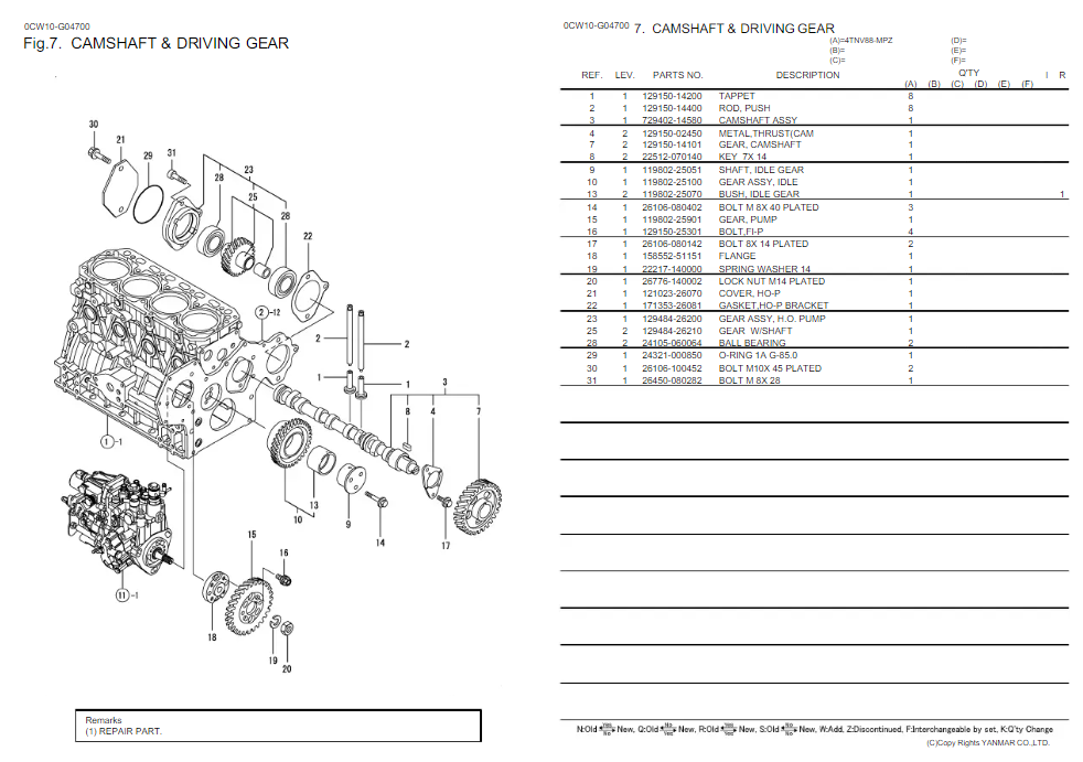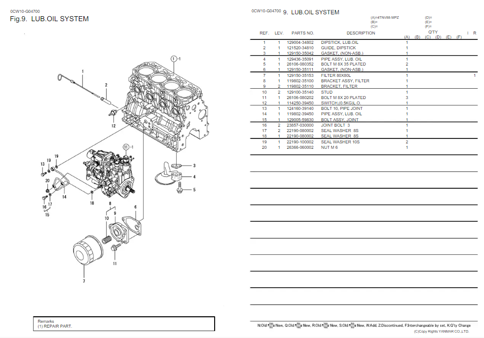 Download Complete Parts Catalogue Manual For Yanmar 4TNV88-XB Engine
