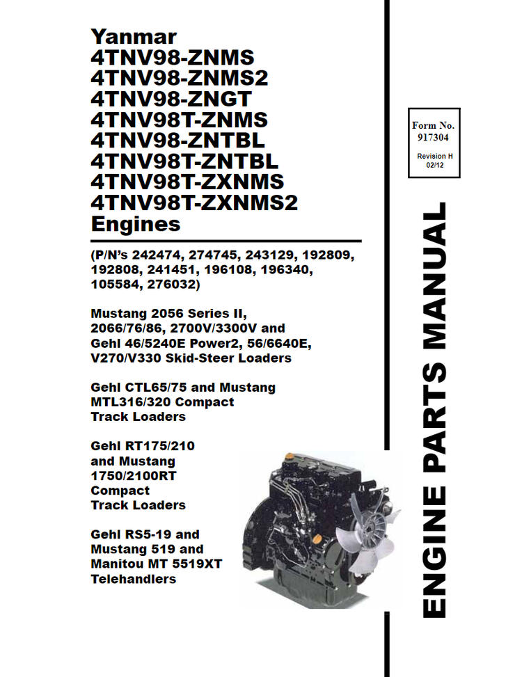 Yanmar 4TNV98-ZNMS, 4TNV98-ZNMS2 - 4TNV98T-ZXNMS2 Engine Parts Catalogue Manual (917304) - PDF File