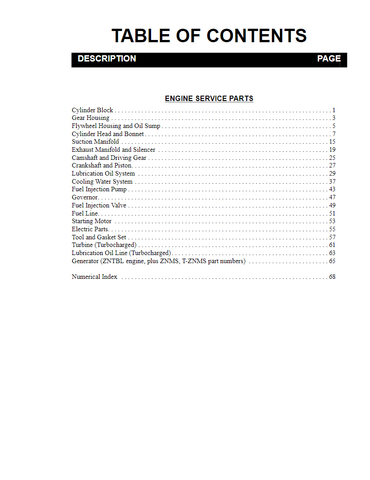 Download Complete Parts Catalogue Manual Yanmar 4TNV98-ZNMS, 4TNV98-ZNMS2 - 4TNV98T-ZXNMS2 Engine