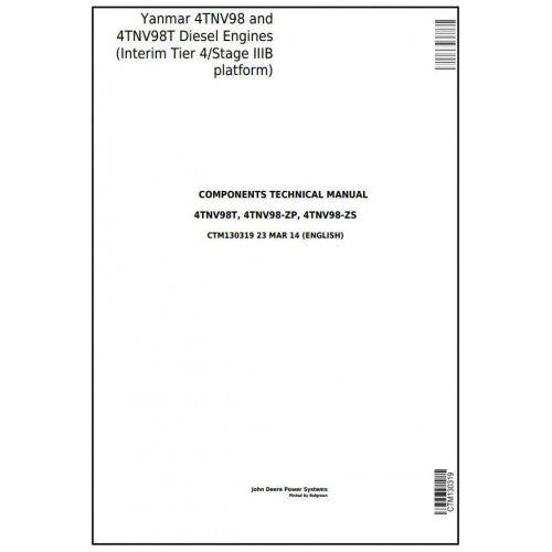 DOWNLOAD COMPLETE TECHNICAL SERVICE MANUAL FOR YANMAR 4TNV98T DIESEL ENGINES (INTERIM TIER4/STAGE IIIB) | Publication Number - CTM130319