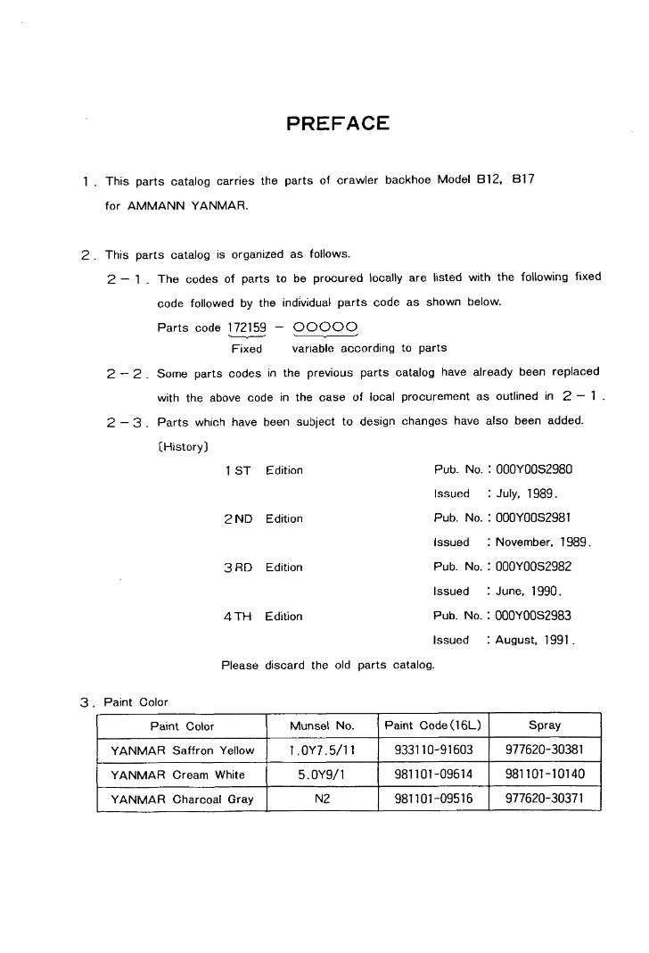 Download Complete Parts Catalogue Manual For Yanmar B12, B17 Crawler Backhoe | Issued: August, 1991