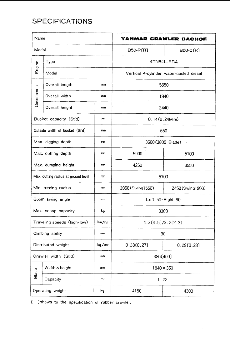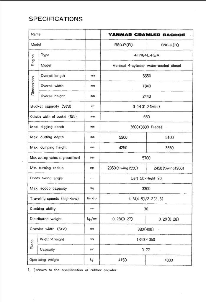 B50, B50-1 YANMAR CRAWLER BACKHOE PARTS CATALOGUE MANUAL - PDF FILE DOWNLOAD