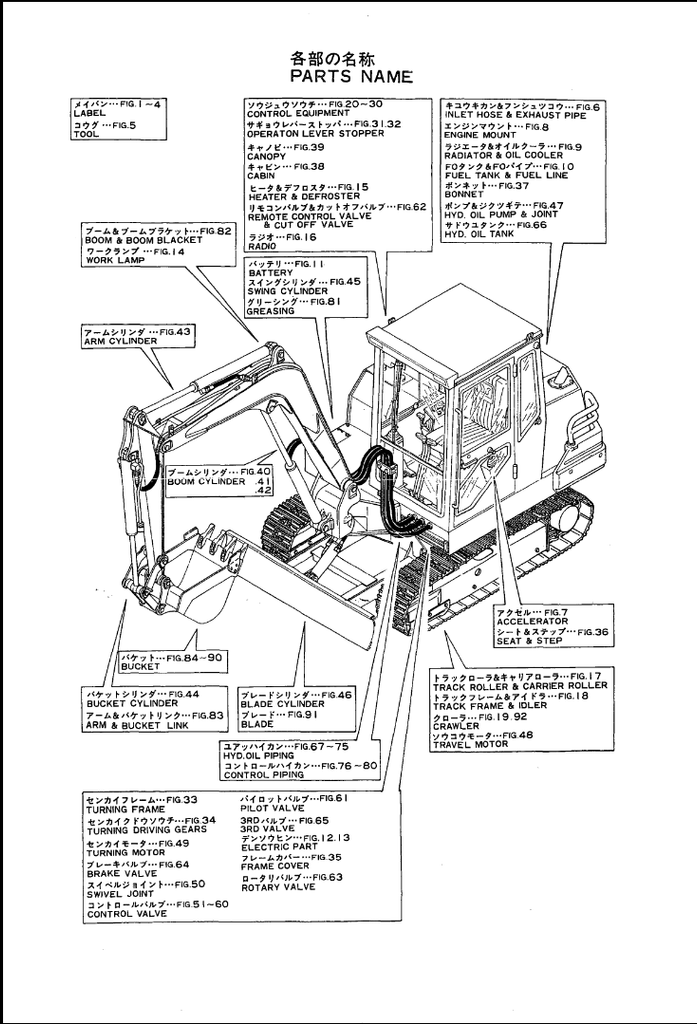 Yanmar B50, B50-1 Crawler Backhoe Parts Manual