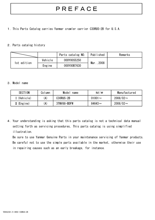 Download Complete Parts Catalogue Manual For Yanmar C30RUS-2B Excavator | Part No. 0CS10-M52500_en