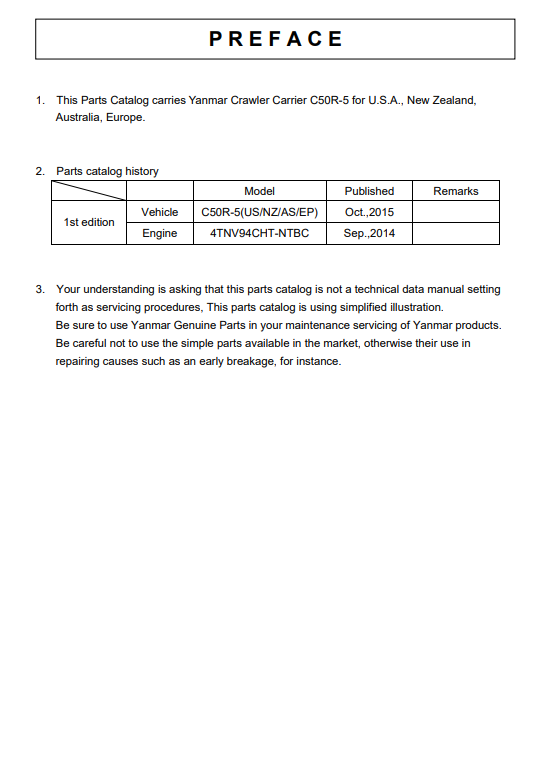 Download Complete Parts Catalogue Manual For Yanmar C50R-5 Excavator | Part No. 0CK50-M00750_en