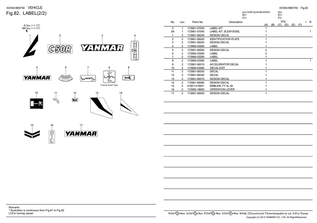 YANMAR C50R-5 EXCAVATOR PARTS MANUAL