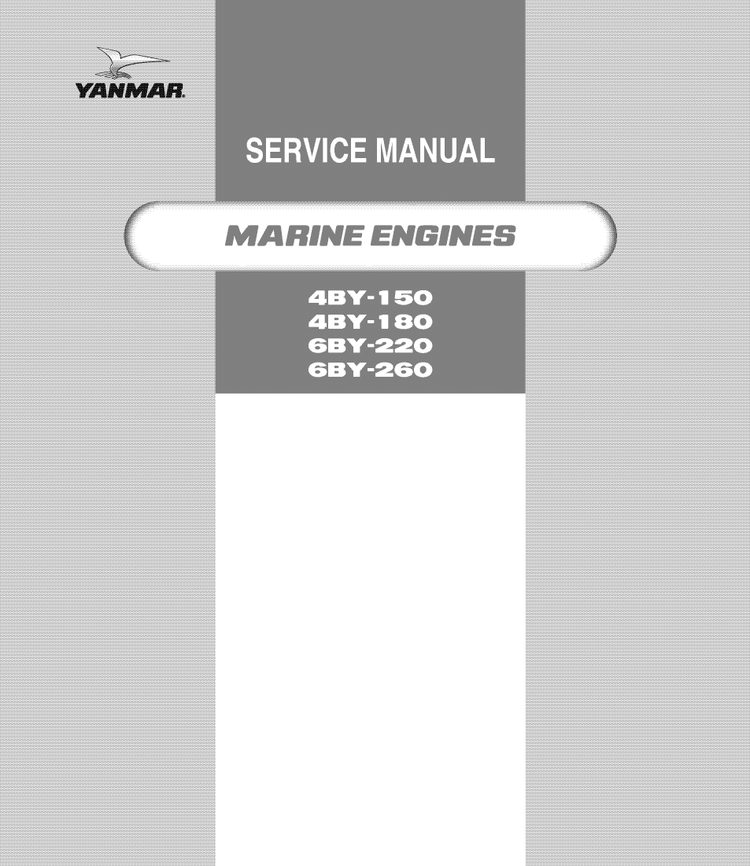 This Yanmar Marine Diesel Engine Service Repair Manual covers the 4BY-150, 4BY-180, 6BY-220 and 6BY-260 models. All repair processes and technical specifications are provided in clear and precise detail, ensuring accuracy and efficiency in all service and repair tasks. Get the most up-to-date information with this instant PDF download.