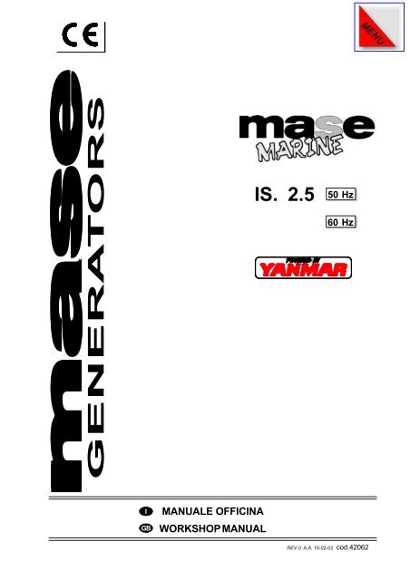 Yanmar Mase IS 2.5 (50Hz, 60Hz) Generator Service Repair Manual - PDF File Download