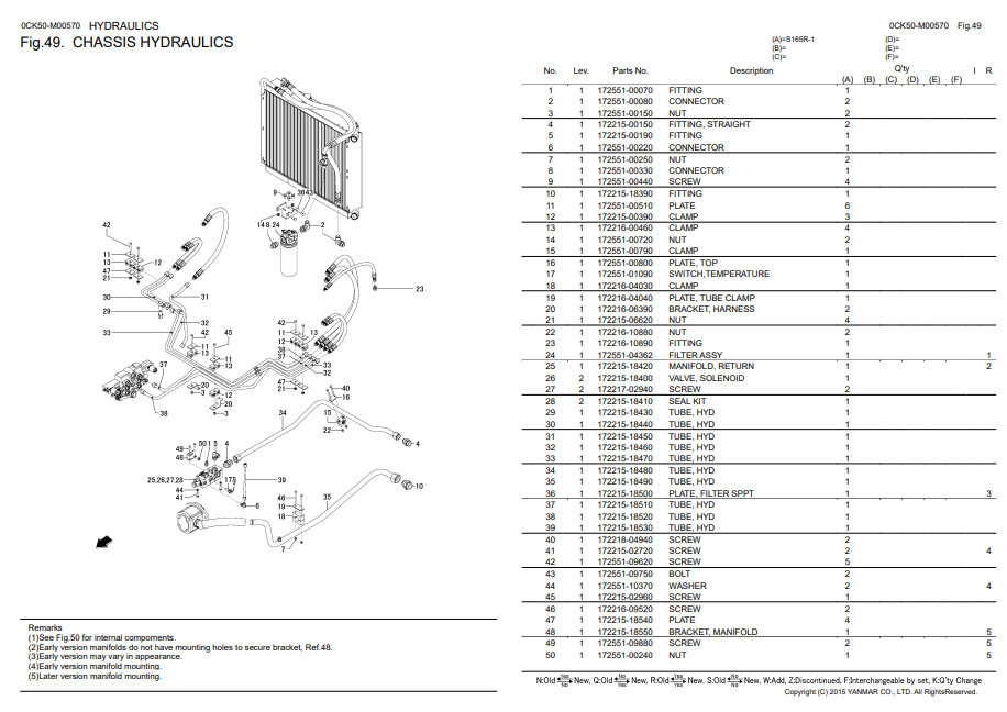 YANMAR S165R-1 SKID STEER LOADER PARTS CATALOGUE MANUAL 0CK50-M00570_EN