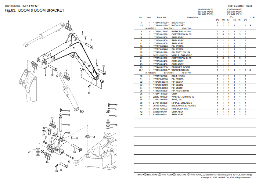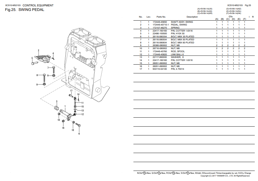 Yanmar SV08-1A Excavator Parts Catalog Manual