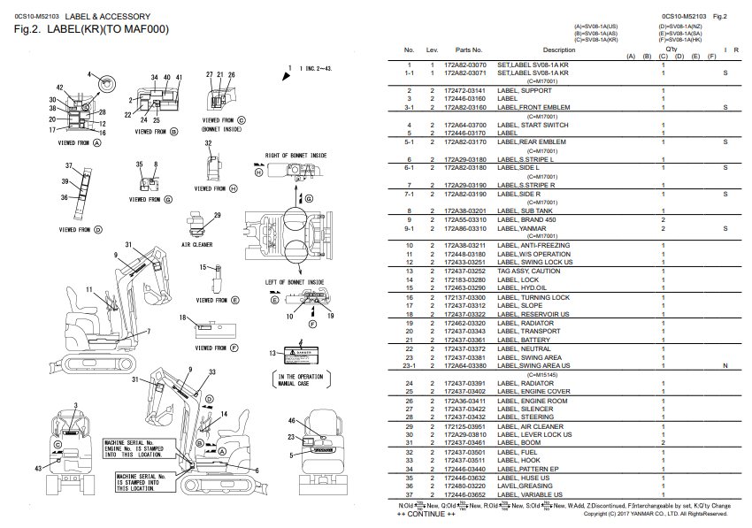 Yanmar SV08-1A Excavator Parts Catalog Manual 0CS10-M52103_en - PDF File