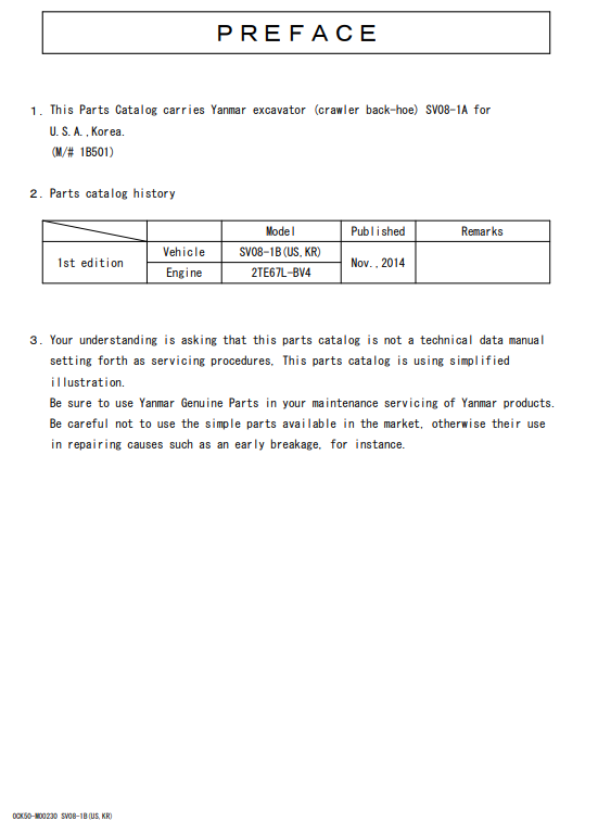 Download Complete Parts Catalogue Manual For Yanmar SV08-1B Excavator | Part No. 0CK50-M00230_en