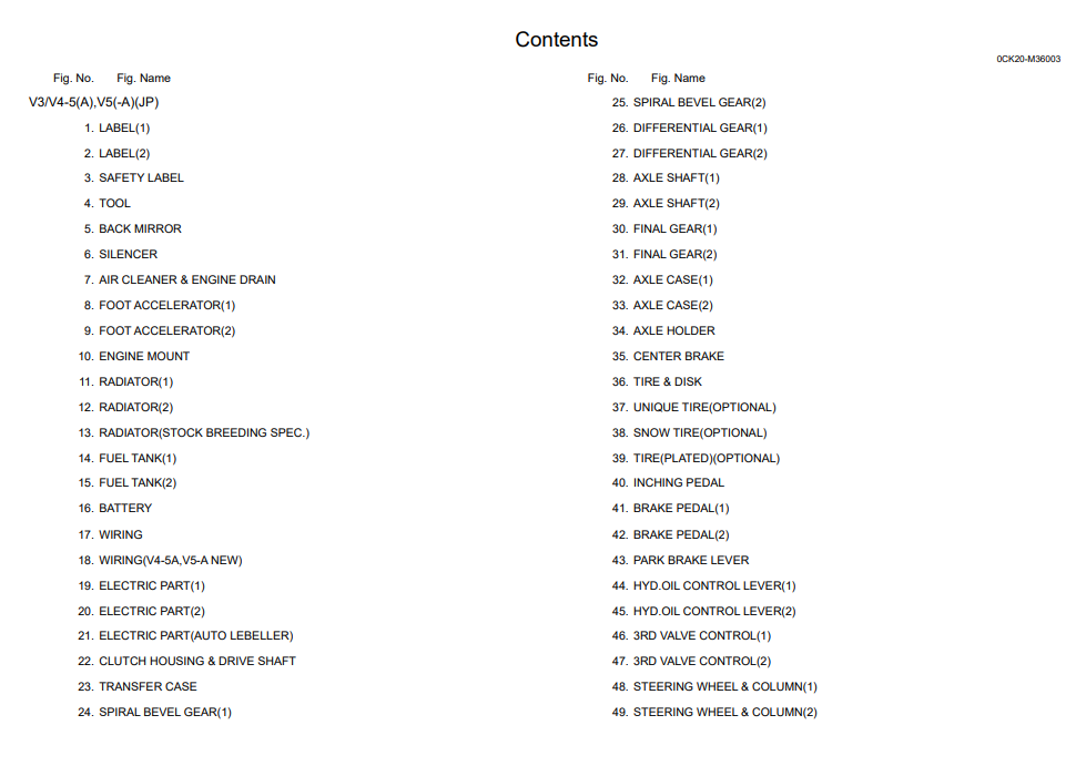 YANMAR V3-5 (M/C), V4-5 (A), V5 (-A) WHEEL LOADER PARTS CATALOG MANUAL 0CK20-M36003_EN - PDF FILE