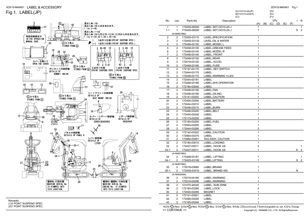 Download Complete Parts Catalogue Manual For Yanmar VIO15-2A Excavator | Part No. 0CK10-M40401_en