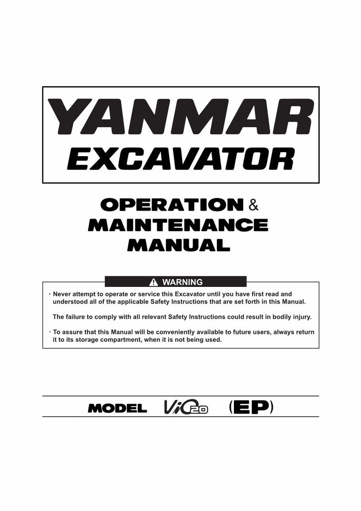 Yanmar ViO20 (EP) Excavator Operation & Maintenance Manual - PDF File Download