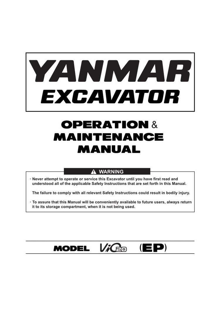 Download Complete Operation & Maintenance Manual For Yanmar ViO20 (EP) Excavator | Serial Number - 25501 & Above