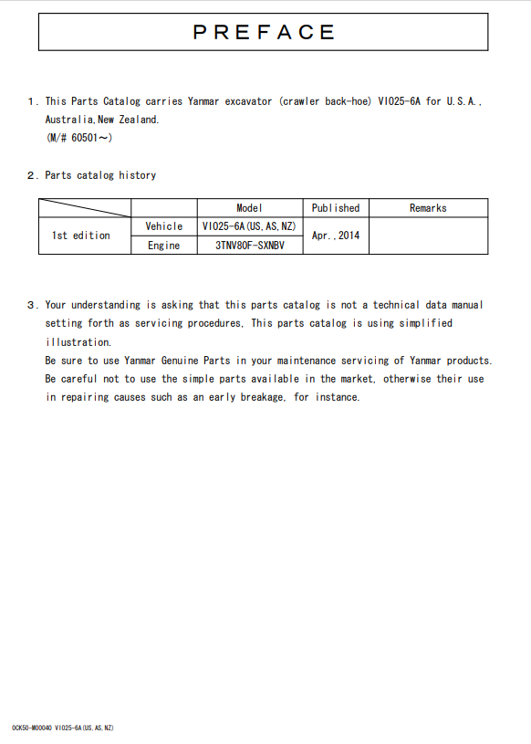 Download Complete Parts Catalogue Manual For Yanmar VIO25-6A Excavator | Part No. 0CK50-M00040_en