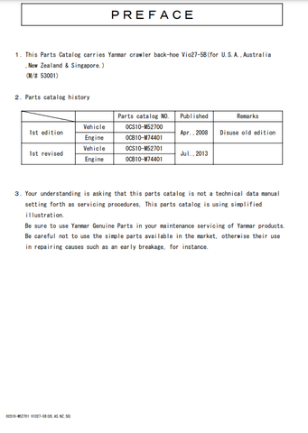 Yanmar VIO27-5B Excavator Parts Catalogue Manual 0CS10-M52701_en - PDF File