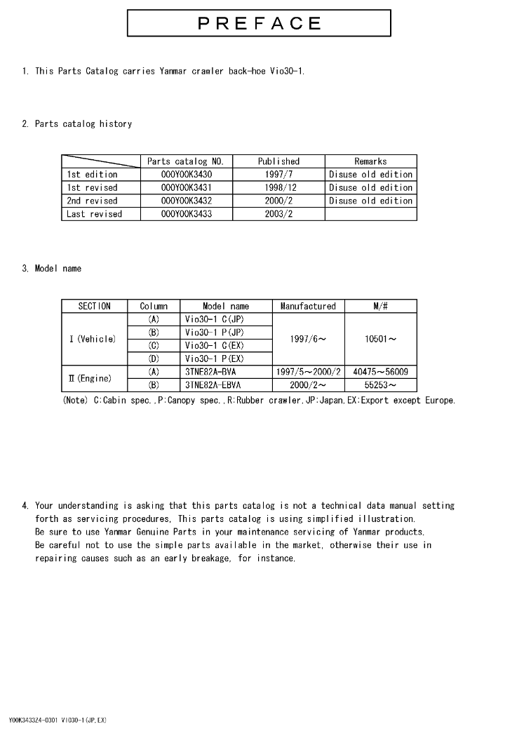 This Yanmar Vio30 Crawler Backhoe Parts Catalog Manual provides detailed OEM parts information for Yanmar Vio30 machines. This PDF file is an exact replica of the parts book printed for technicians, offering a comprehensive overview of every component. Download this comprehensive file and access the necessary information quickly and precisely.
