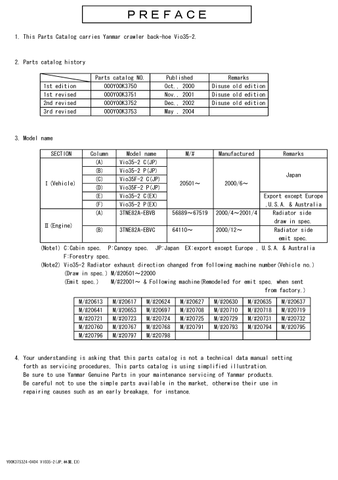 Parts Catalogue Models Covered:Yanmar VIO35-2 Excavator