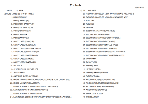 Parts Catalogue Manual Contents:VEHICLE VIO35-2(JP,FORESTRY,EX)
