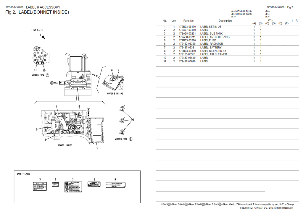 Yanmar VIO35-6A Crawler Backhoe (for U.S.A.) Parts Catalogue Manual - PDF File