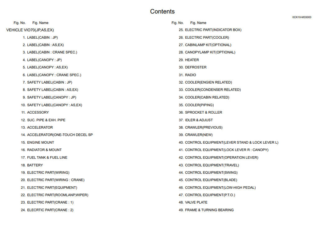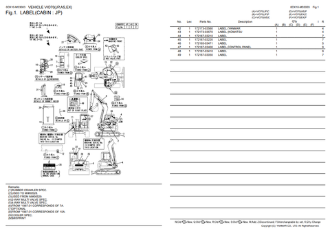 This Yanmar VIO70 Crawler Backhoe Parts Catalogue Manual OCK10-M33003EN provides all the parts information needed to maintain and repair your Yanmar Crawler Backhoe. It includes detailed diagrams and explicit instructions in PDF format for quick and precise part identification.
