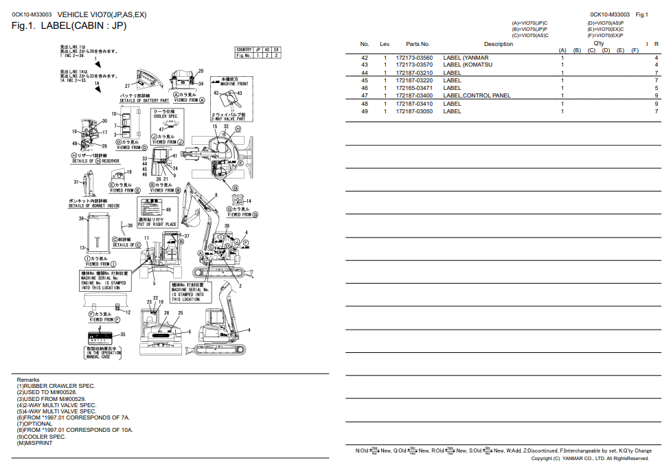 Parts Catalogue Manual Contents:1. LABEL(CABIN : JP)